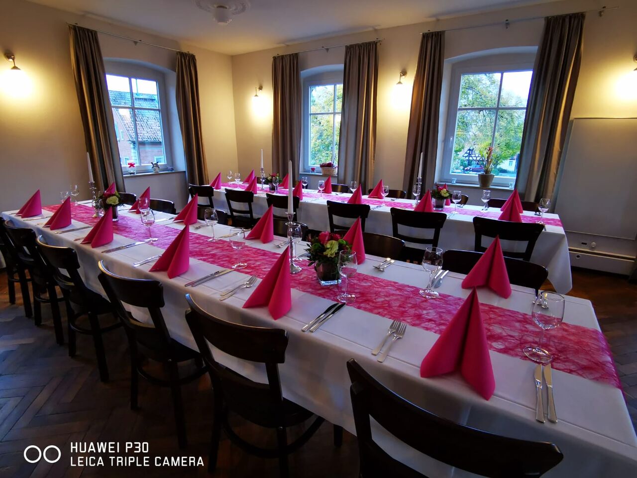 Unser Saal bietet Platz für bis zu 120 Personen und ist vielseitig nutzbar. z. B. für Hochzeiten, Geburtstage, Firmenfeiern, Jubiläen und vieles mehr. Auch Seminare und Fortbildungen sind hier möglich. Wir richten die Feier ganz nach Ihren Vorstellungen aus. Die Voraussetzungen für musikalische Veranstaltungen sind gegeben. (Podium sowie Equipment nach neuester Technik können genutzt werden.)